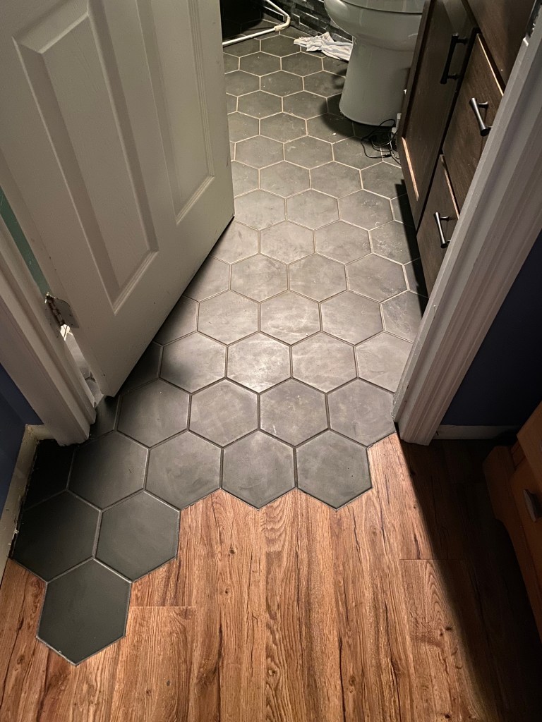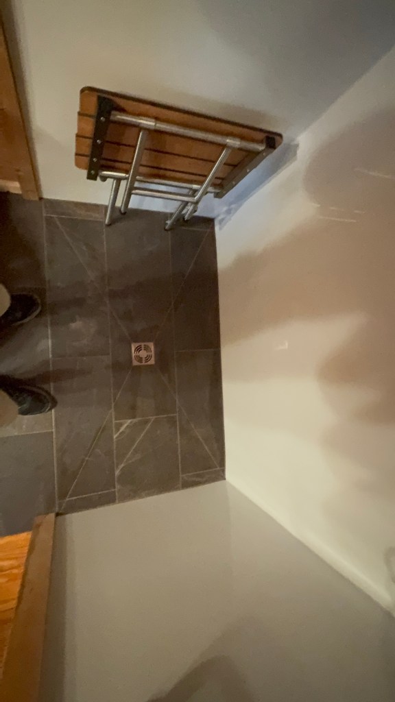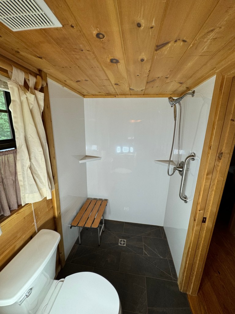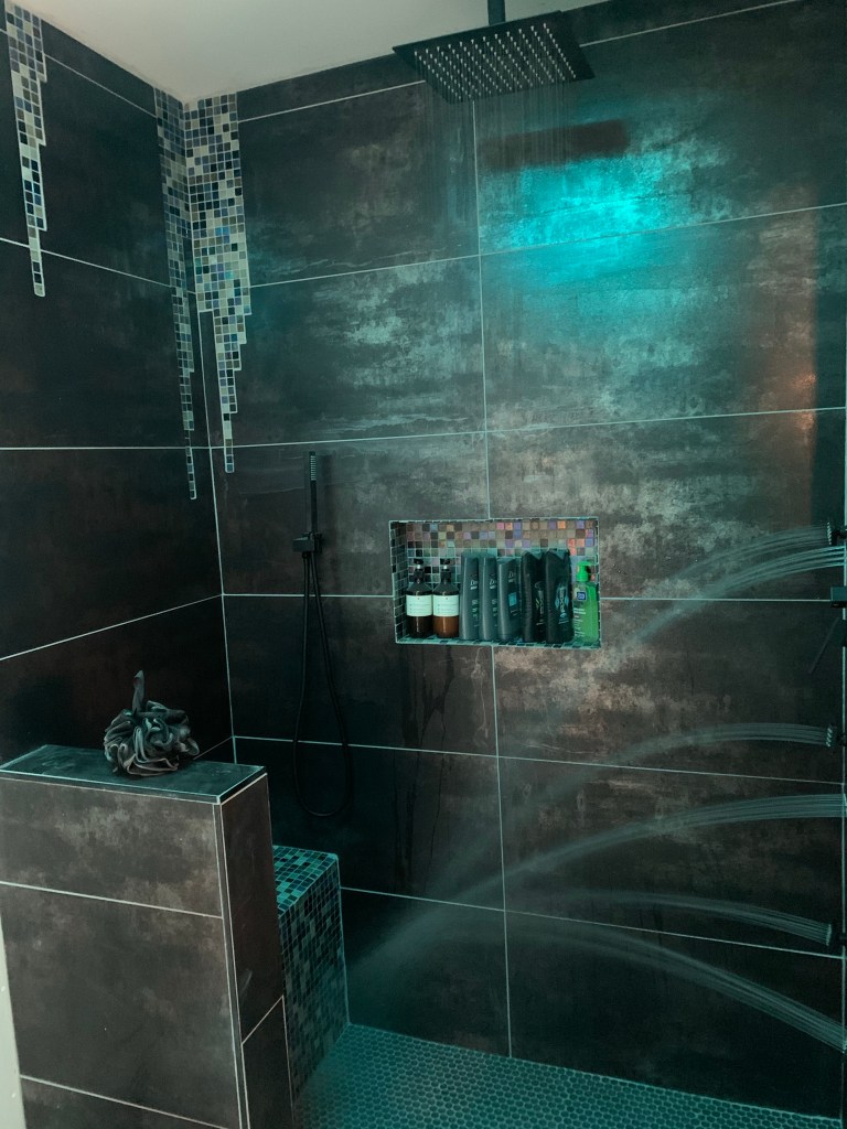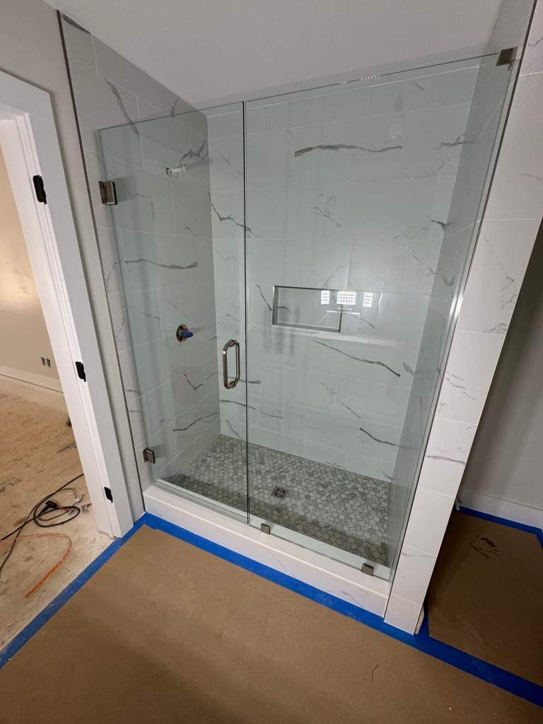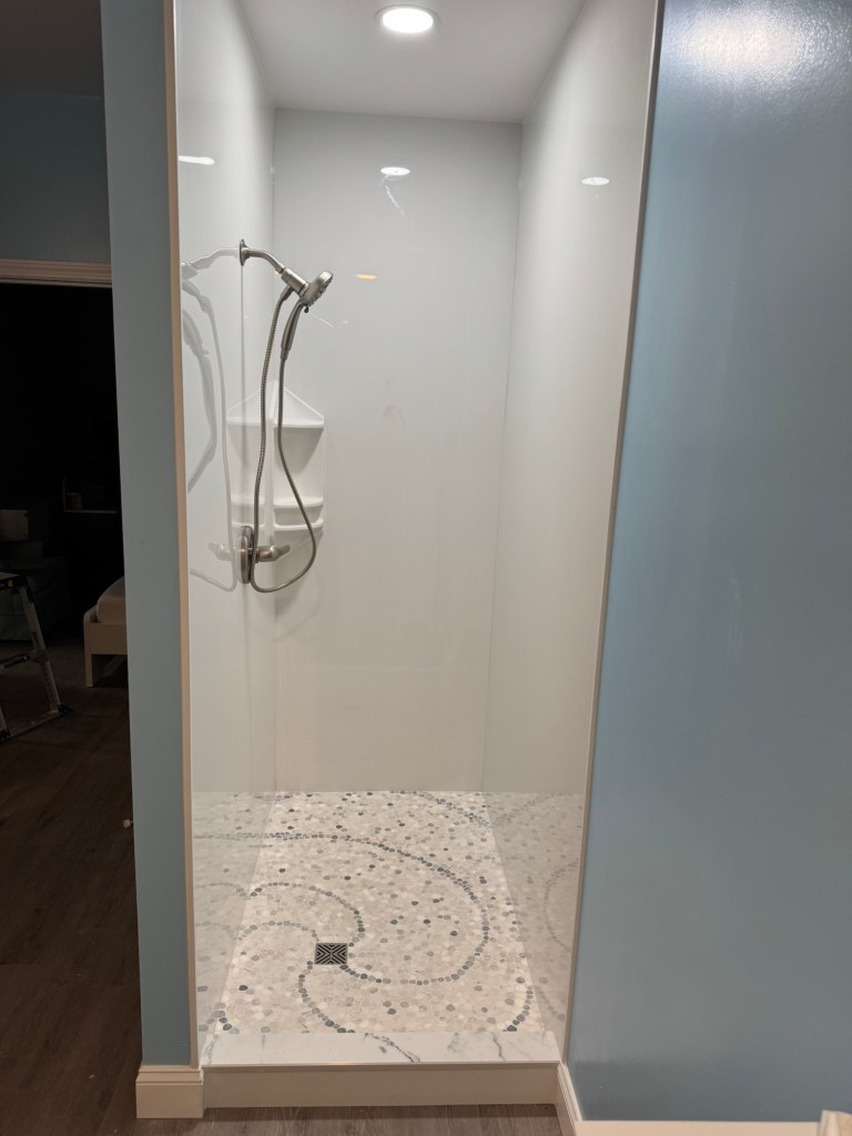 Completed Projects Acrylic walls with a custom tile pan and tiled drain grate. With bench, grab bars, niche, and barn door style glass doors. Share this: Click to share on X (Opens in new window) X Click to share on Facebook (Opens in new window) Facebook Like Loading...